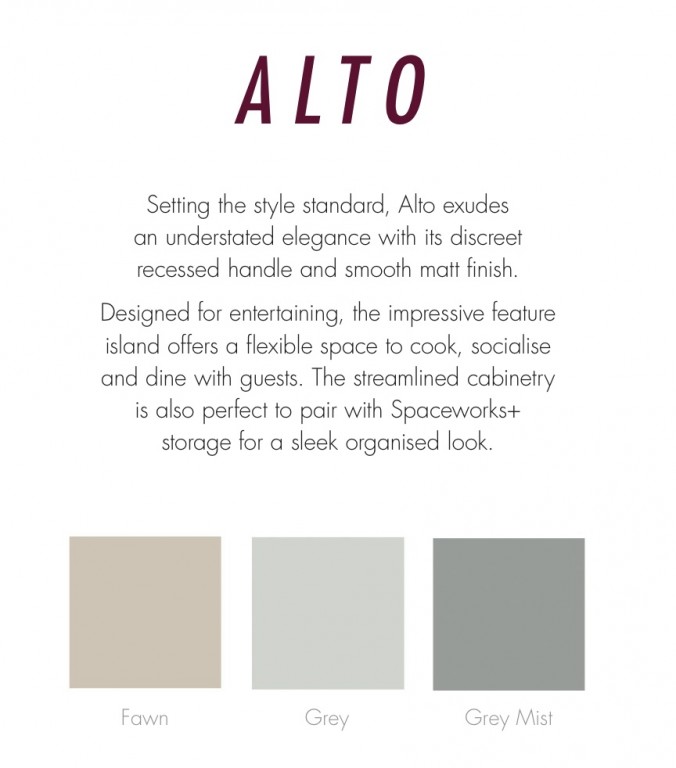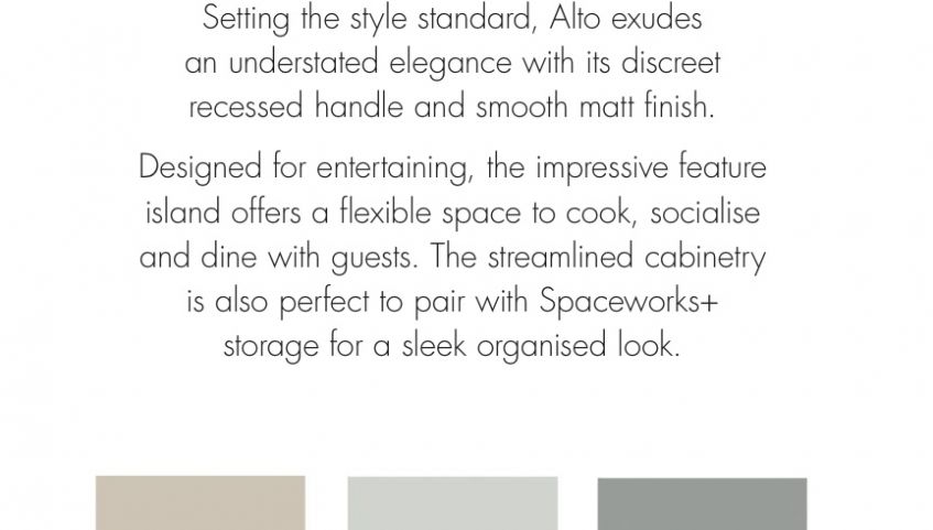 Setting the style standard, Alto exudes an understated elegance with its discreet recessed handle and smooth matt finish.