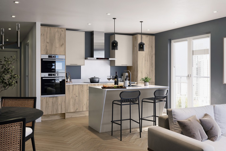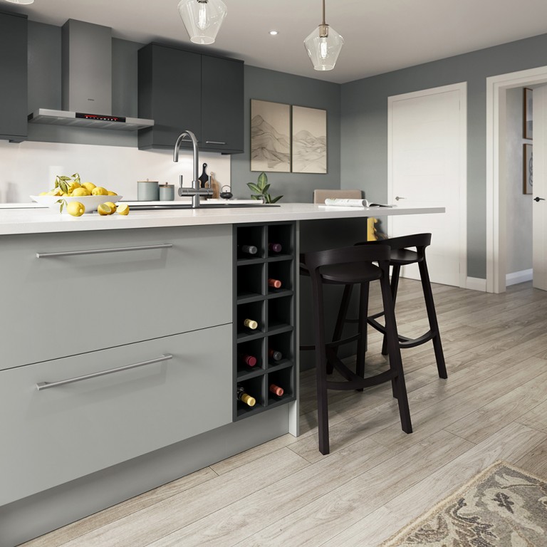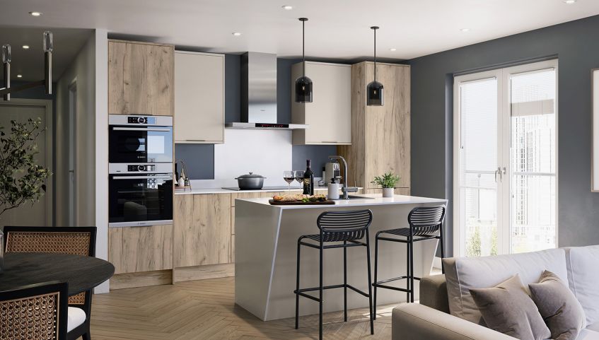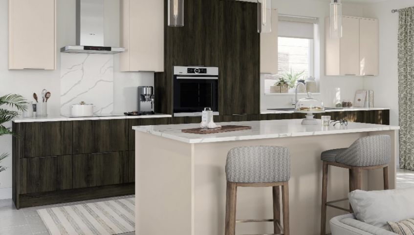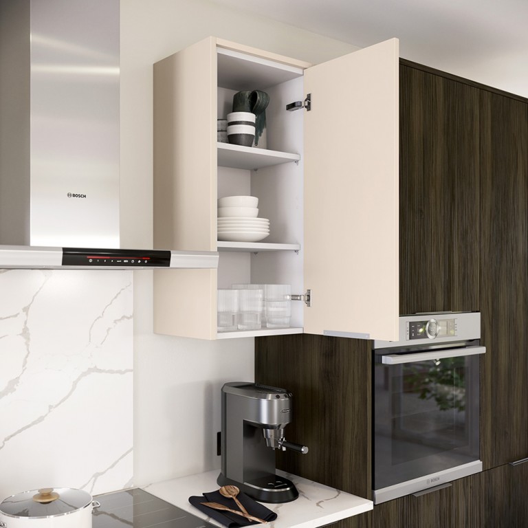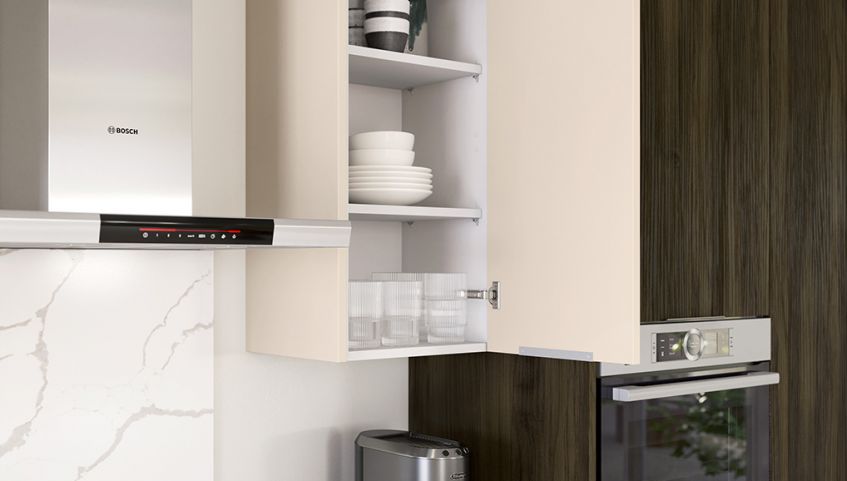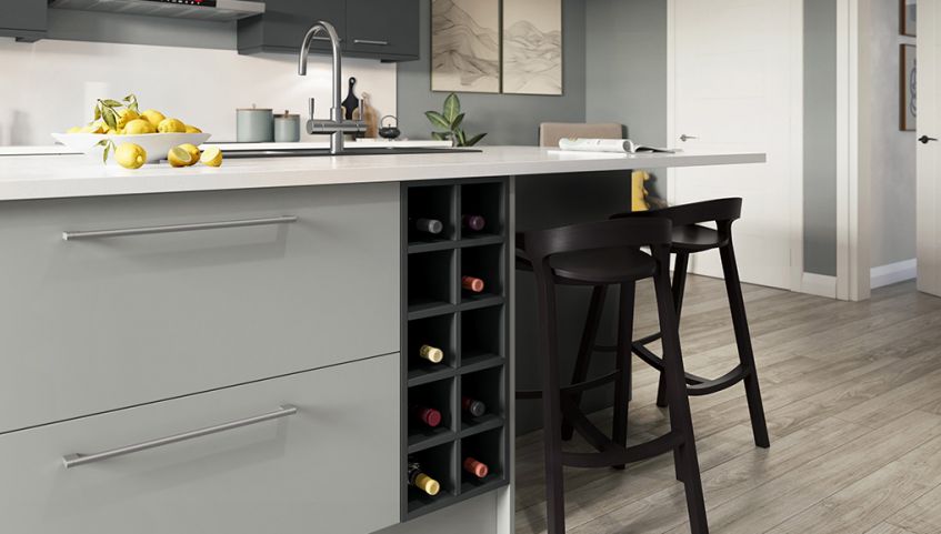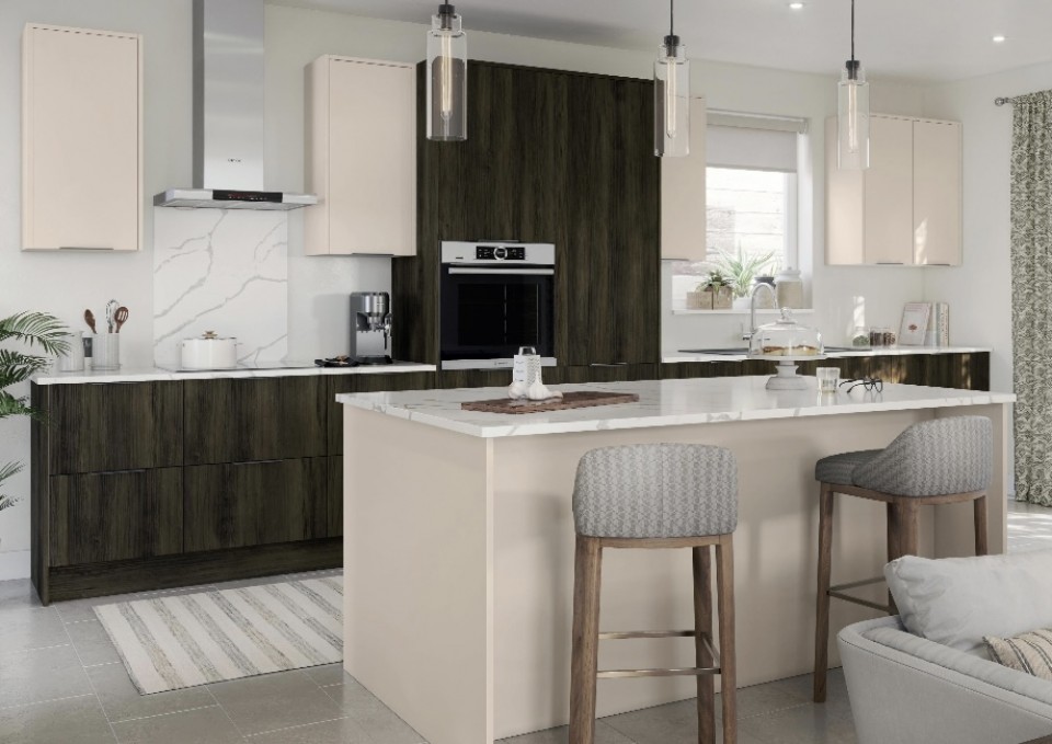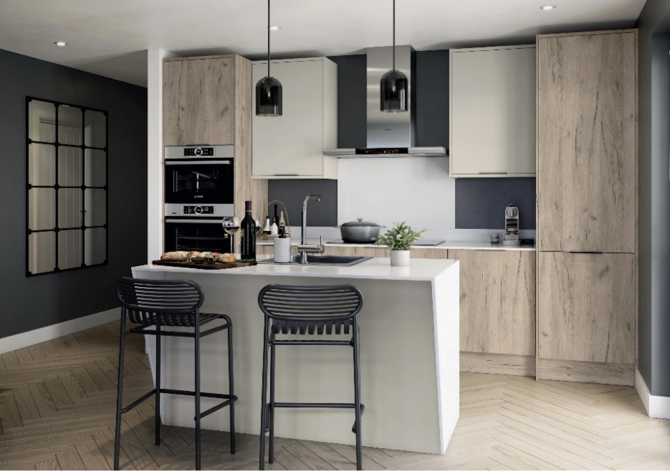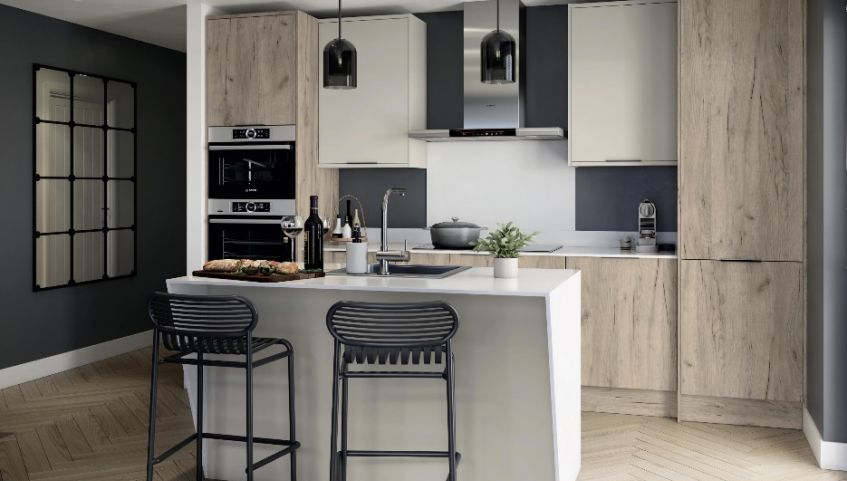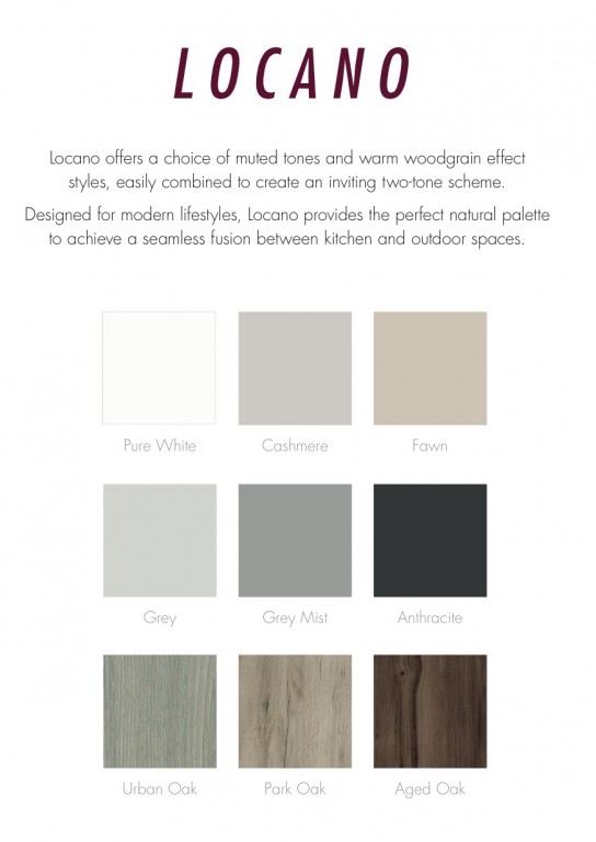 Locano offers a choice of muted tones and warm woodgrain effect styles, easily combined to create an inviting two-tone scheme.
