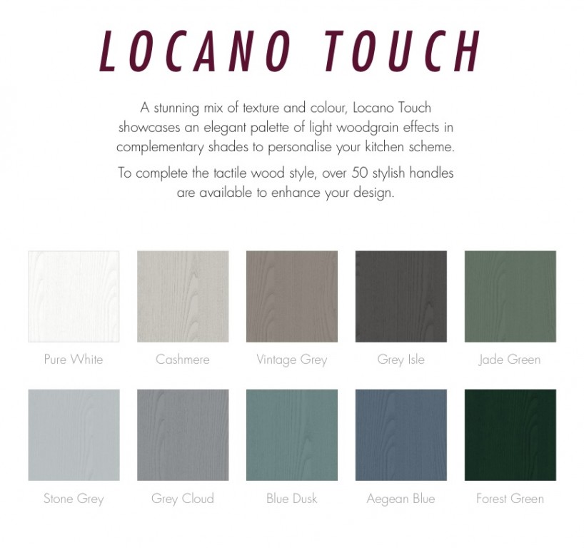 A stunning mix of texture and colour, Locano Touch showcases an elegant palette of light woodgrain effects in complementary shades to personalise your kitchen scheme.