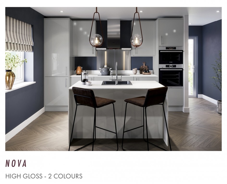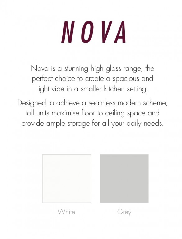 Nova is a stunning high gloss range, the perfect choice to create a spacious and light vibe in a smaller kitchen setting.
