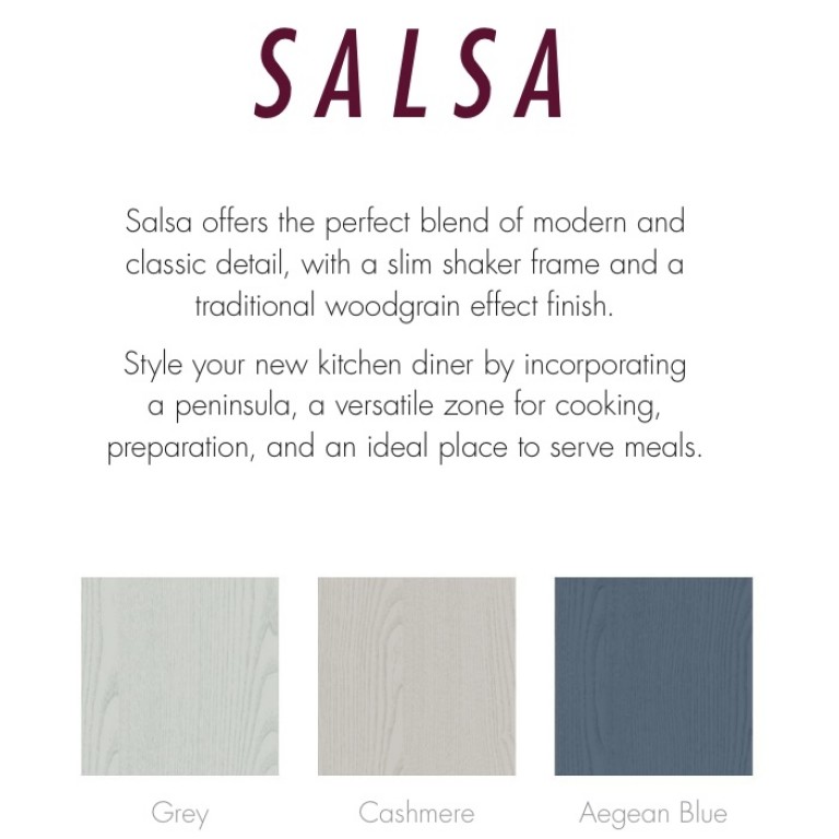 Salsa offers the perfect blend of modern and classic detail, with a slim shaker frame and a traditional woodgrain effect finish.