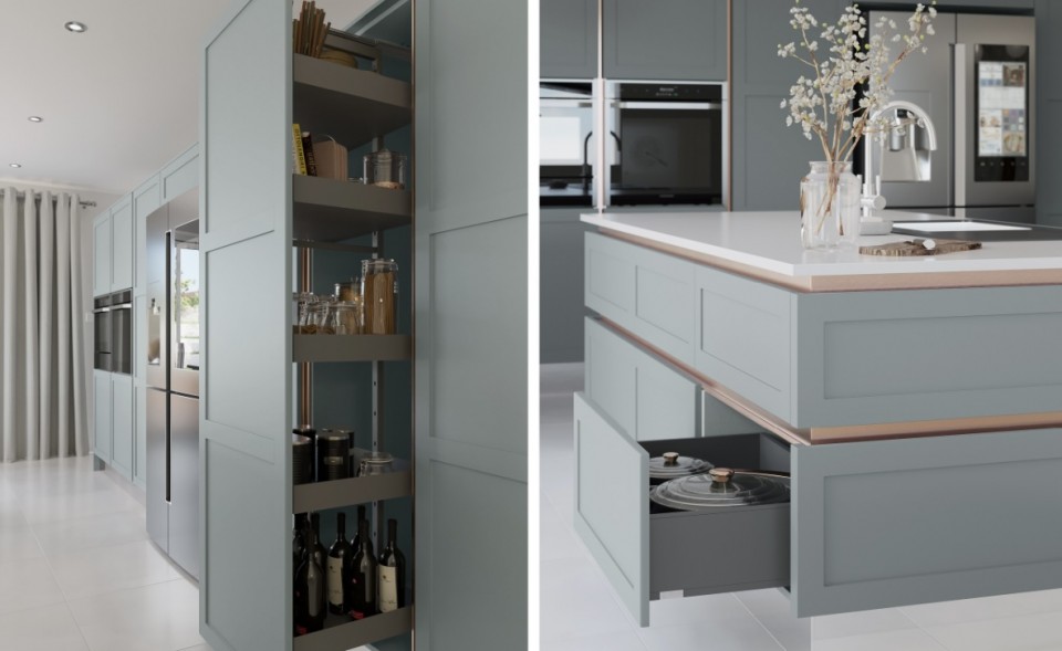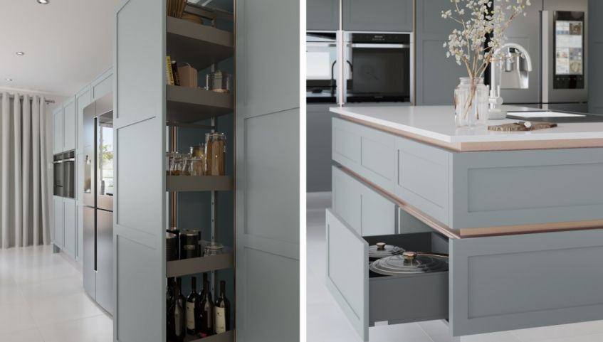 With a delicate slim frame, Shenaya epitomises a stylish smooth shaker design. Ideal to add warmth to a large open plan kitchen, there are a palette of vibrant and neutral tones ready to be perfectly paired.