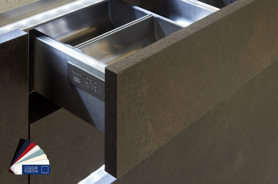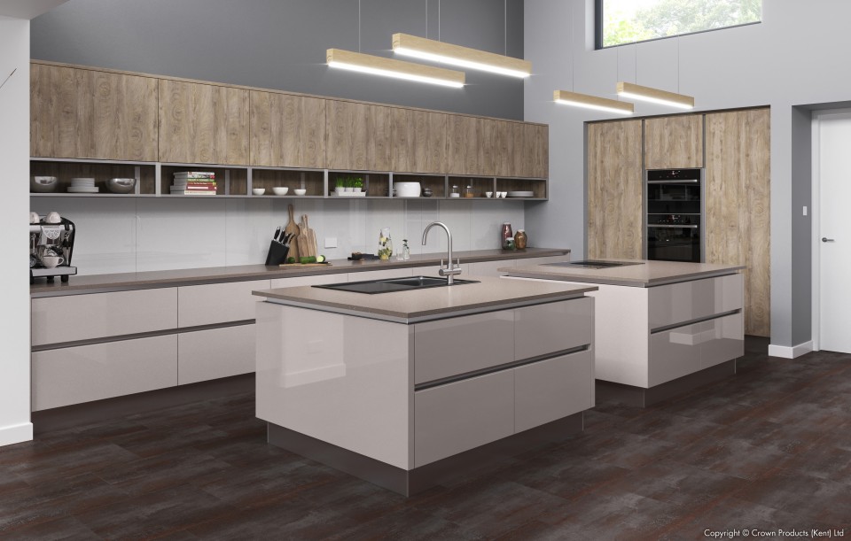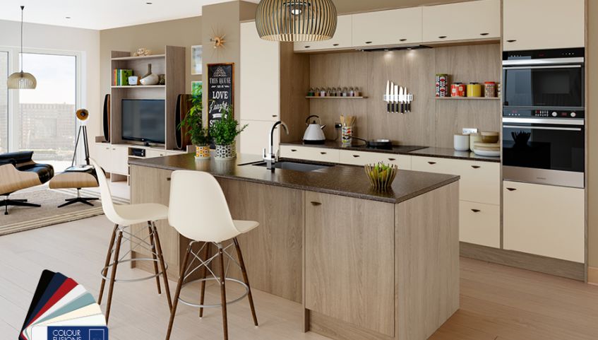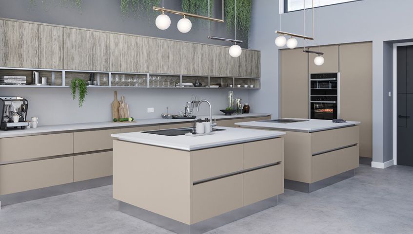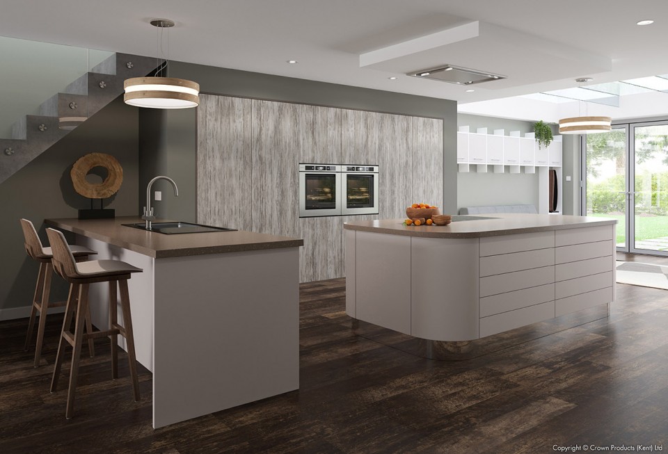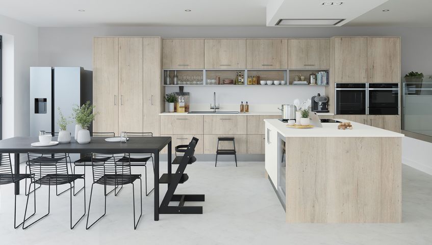 Textura, a beautiful coolection of deep textured woodgrain and stone effect styles, perfectly paired with neutral tones. Aesthetically pleasing, the simple bar handle is the perfect choice to create a contempory scandi style.